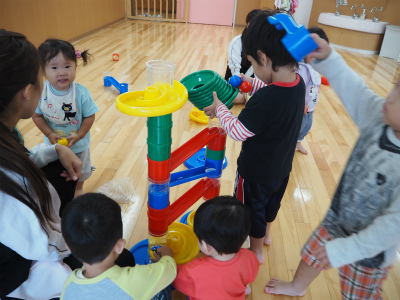 今日の保育部の午前中の様子です。 今日は部屋での活動でしたが、初めての玩具に子ども達も興味津々でした。 自分たちで台を組み立てボールを転がす玩具で、どのように組み立てればよいのか先生たちに聞きながら組み立てる様子も見られ…