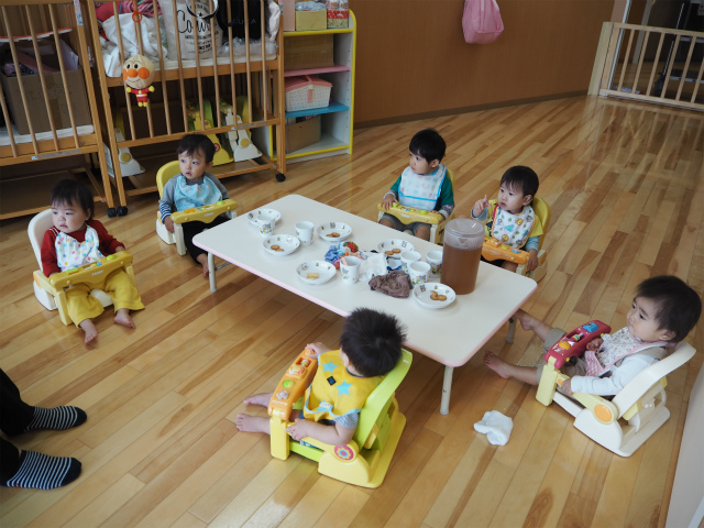 もも組さんの朝おやつの時間です。 今日は休んでいるお友達が多く少しさみしいですね… 登園しているお友達はおいしそうにおやつを食べています。 牛乳を自分でコップを持ってゴクゴク飲めるようになりました! お腹がいっぱいになっ…
