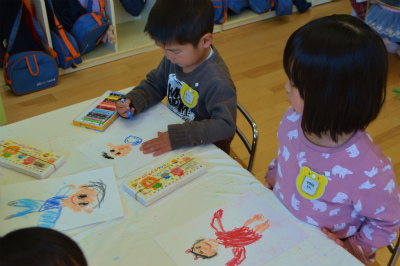 今日はたいよう組です☀ 午前中は、塗り絵の練習をしました! 細かいマスを1つ1つ丁寧にぬっていきます。 鉛筆の持ち方も気を付けています。 うーん、難しいなあ・・・(…