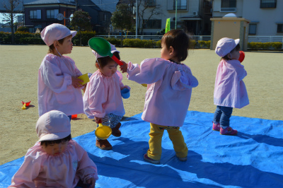 とても暖かくて気持ちのいい日でしたね! もも組さんはふれあい公園へ散歩に出かけました。 シートを敷き、子ども達はシャベルや型を使って砂遊びをしました。 保育園に戻ると大好きな給食です。 みんな成長し、自分でスプーンを持ち…