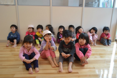 今日は英語教室でした。 めろん組は、二回目の英語教室です。 ゆりこ先生が来たとき、みんなニコニコ笑顔に(*^_^*) ゆりこ先生がどんなことをしてくれるのか、目をキラキラさせていました。 名前を呼ばれると、…