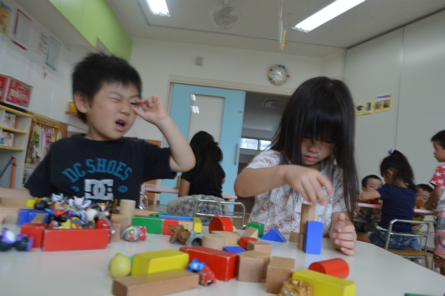 今日はほし組さんの午後の活動を覗いてみました(*^_^*) ブロックやつ積み木を使って遊んでいますね! 何を作ってるのかな~?(^-^) 「ぞうさん!」「ママのお家!」など、お友達と一緒に作っている姿も見られました(*^…