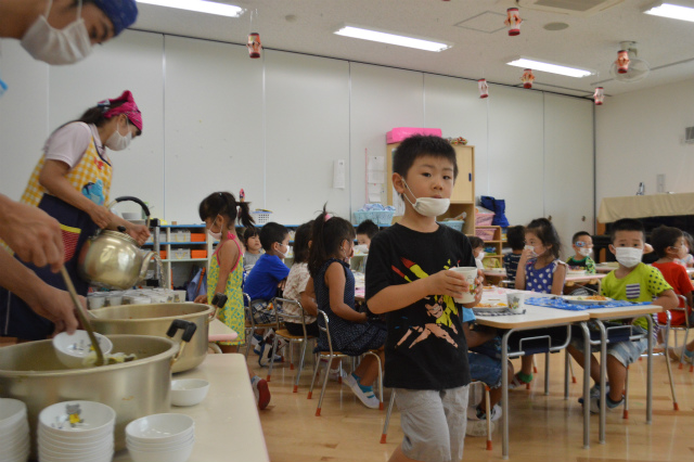 今日は、保育部さんと幼稚部さん合同で園周辺をお散歩してきました♪ お友達としっかり手を繋いでお散歩することが出来ました!(^^)! 「あ、きゅうりだね~」と、お友達と話をする声も聞こえてきます。 帰ってきたらゴクゴクとお…