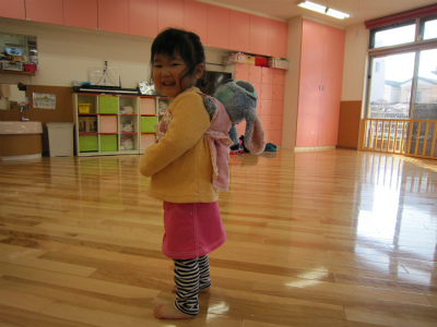 今日は朝から可愛いお店屋さんがオープンしました。 大きいお姉さんが「ぬいぐるみ屋さんとボール屋さんで~す♪」と声をかけると 男の子も女の子もみんな集まって品物を選んでいました。 おやつを食べた後は、幼稚部さんと保育部…
