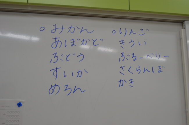 今日はたいよう組のワクワクタイムで 丸の見立て遊びをしました。 「丸の果物って、どんなものがあるかな?」 『りんご!』 『柿って丸かな?』 『トマト!』『それは野菜だよ!』 みんなで考えながらこんなにたくさ…
