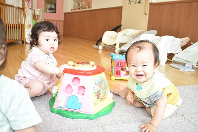 今日はもも組のお友達の午後の様子です。 美味しいおやつの時間の後はお部屋の中で おもちゃを出して遊びました。 最近はお友達にも興味を持ち始め、 隣に行ってみたり、遊び方を真似した…