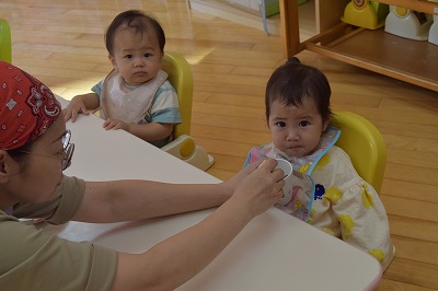 本日はほし組の様子です☆ お水遊びではお店屋さんごっこをしていたり、おもちゃの交換をしながら仲良く遊んでいました。 午後のおやつの様子です。 おいしいドーナツをあっとゆうまにペロリと食べていました。