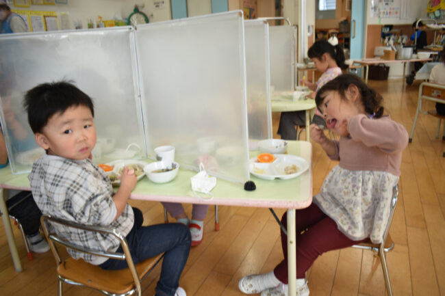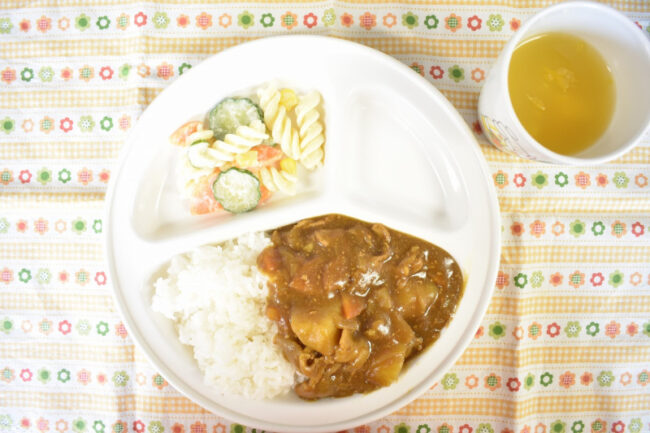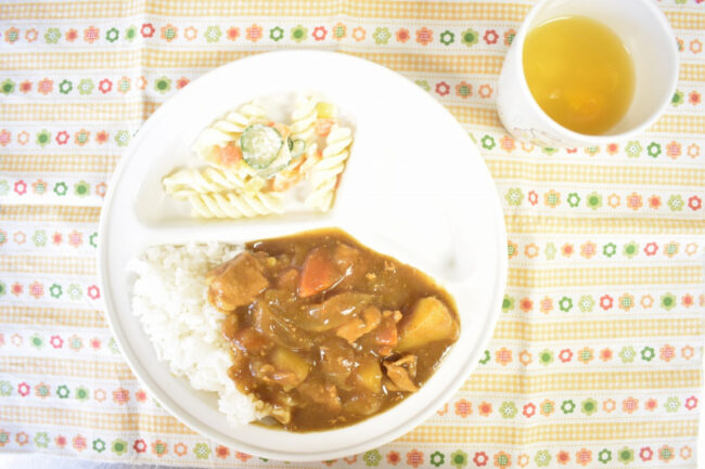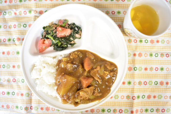 食べる量が増え、おかわりをする子がたくさんいます。また、箸の使い方・食べる時のマナーなども友だちと教え合いながら食べ、とても上手になりました。 カレーパーティー等の体…