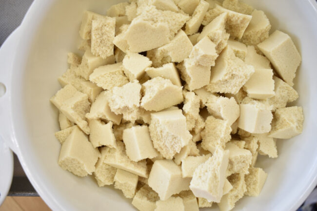 たいよう組でみそ汁づくりを行いました。 今回は給食のみそ汁に入れる、「高野豆腐」をちぎりました。 水に戻す前と戻した後の高野豆腐を触り、固さの違いに子ども達は驚いたようです。 「これじゃあ固くて食べられないね」という声が…
