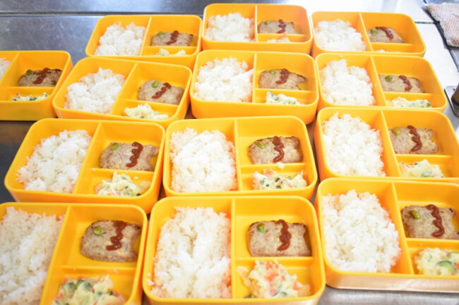 ~ 今日の給食 ~ ・デミグラスソースハンバーグ ・ブロッコリーとコーンの和え物 ・ごはん ・キャベツと油揚げのみそ汁 ・みかん ~ 今日のおやつ ~ ・牛乳 ・りんごゼリー ・ウエハース &…