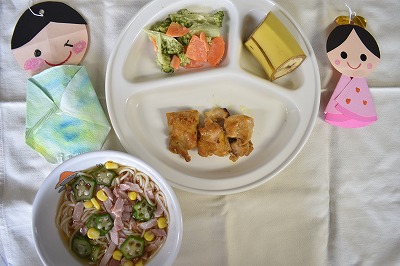 7月7日は、「七夕」です。園では今日、「七夕集会」を行いました。 その為、給食では「七夕そうめん」、午後おやつでは「七夕ゼリー」を食べました。 「七夕そうめん」は、ハムを…