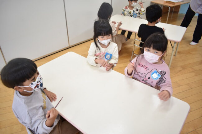 そら組で「箸の練習」を行いました。 保育園では、箸の持ち方を「バンバン持ち」と言っています。 子ども達に「お箸はどうやって持つのかな?」と聞くと、「バンバン持ち」と元気に答えてくれました。 使う指や持ち方を説明した後は、…