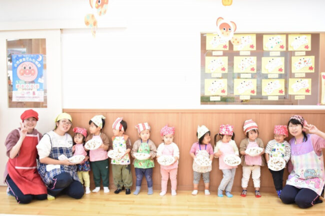 草加にじいろ保育園は完全自園調理給食、園庭開放と子育て講座で地域交流、看護師常駐の体調不良児対応保育園です。