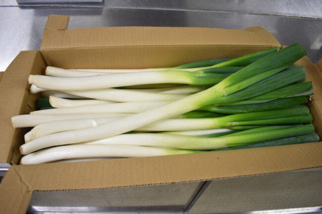 長ねぎをたくさん頂いたため、たいよう組で「長ねぎの観察」を行いました。 初めに、「長ねぎはどうやって育つかな?」や「どこまで食べられるかな?」と質問をしました。 子ども達は、「白いところは全部、土の中に埋まってる」や「緑…