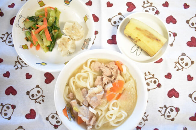 ~ 今日の給食 ~ ・鶏肉のパン粉焼き ・キャベツと人参の昆布和え ・ごはん ・じゃがいもと玉ねぎのみそ汁 ・パイン ~ 今日のおやつ ~ ・牛乳 ・にゅうめん &…