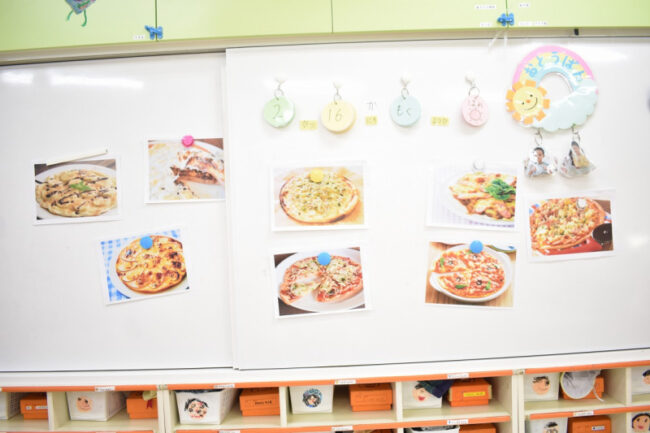 22日にたいよう組が、「ピザづくり」を行います。 その為、今日は準備をしました。 まず、「お肉」・「お魚」・「お菓子」の3つの中から自分が食べたい物を選びました。 その後、それぞれのグループに分かれてトッピングを考え、絵…