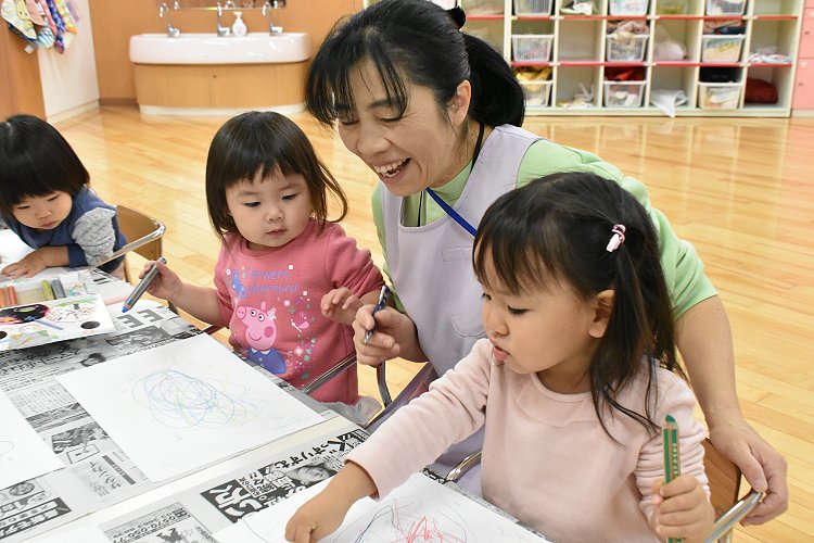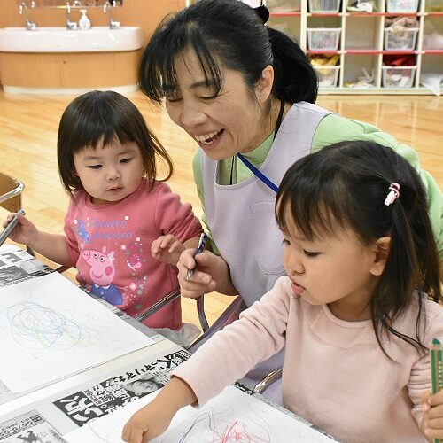 低年齢児保育として生後56日からの乳児から受け入れを可能とし、その家族を支援します。年齢別クラス分けのほかに 0・1・2歳児を保育部、3・4・5歳児を幼稚部として発達段階にあった保育指導を位置づけ実践していきます。